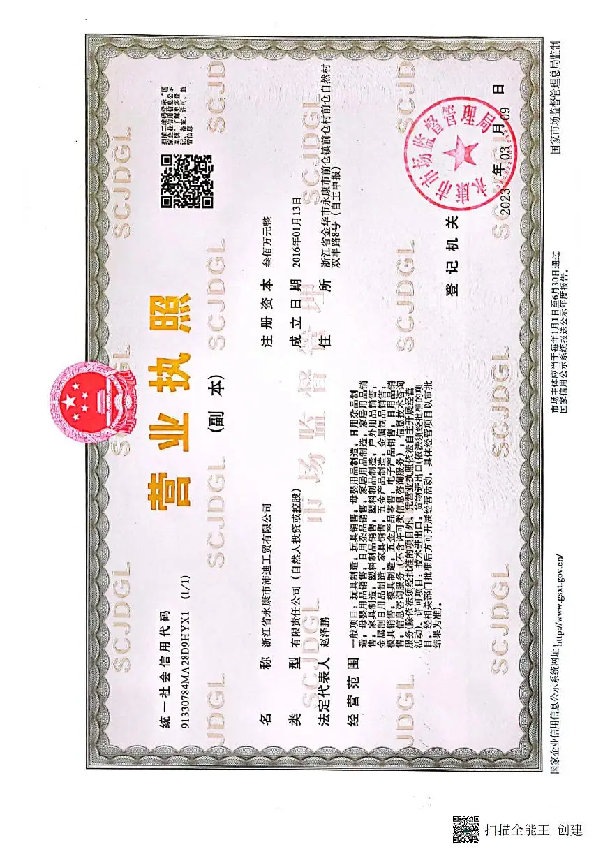 Registered address : No.8 Shuangfeng Road, Qiancang Village, Qiancang Town (independent Declaration) Yongkang Zhejiang China